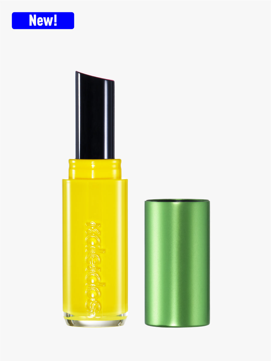 The formula is temperature-responsive and melts upon contact: it stays solid in the tube but melts instantly with body heat and light pressure, shifting from a balm to a gloss-like texture that delivers high shine and rich color payoff.
