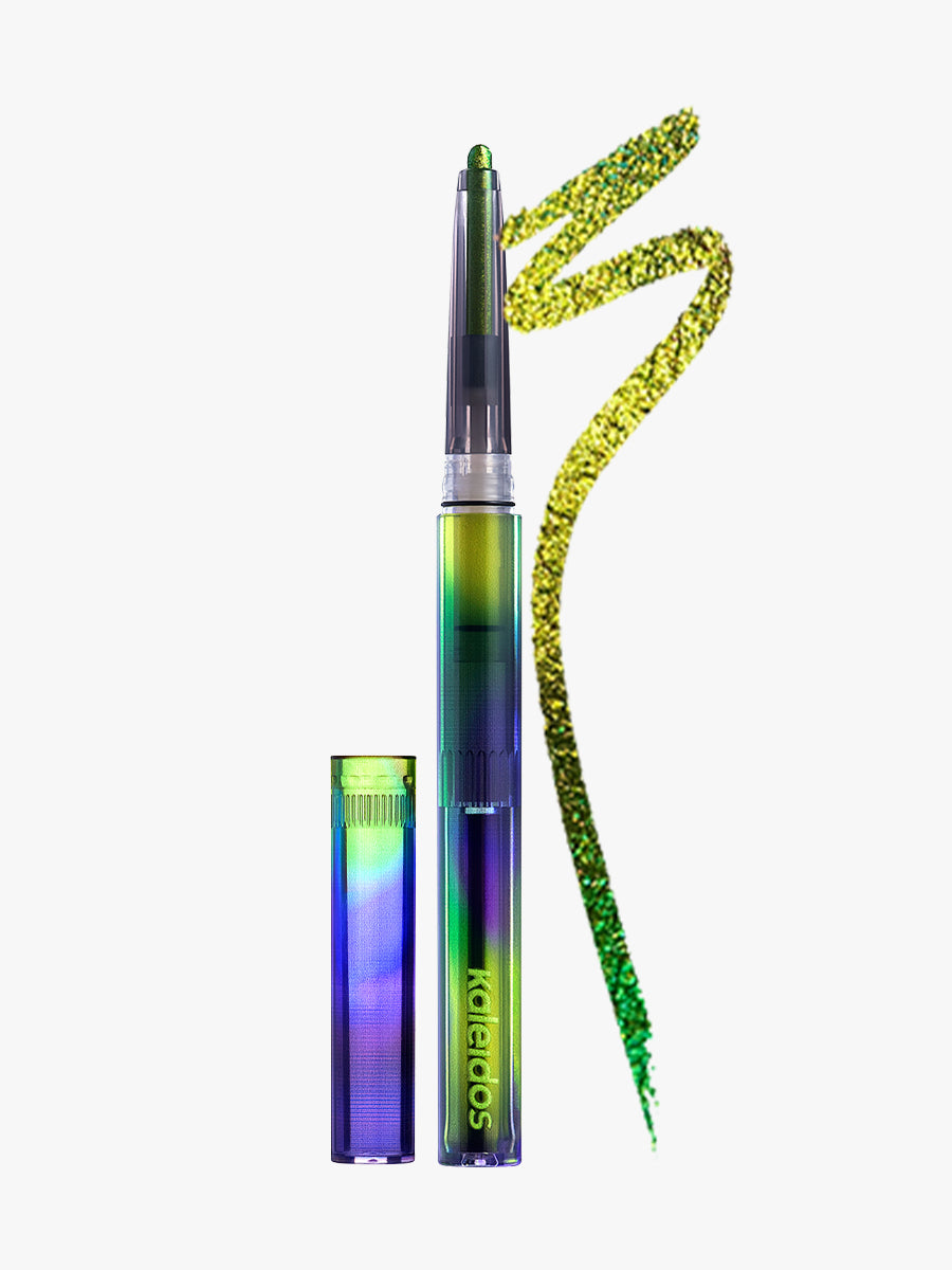 A prismatic multichrome gel eyeliner with a color shift across Custard - Lime - Grass Green - Turquoise - Lake Blue. Sail through the boundless light of nature’s seven seas.