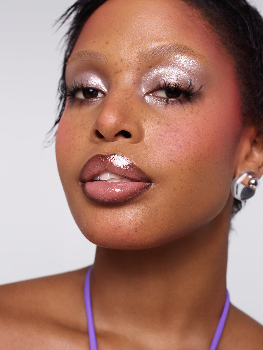 A high-shine lip glaze that envelops lips in vinyl-like shine with nourishing hydration and a refreshing cooling sensation. Cushiony and comfortable, this formula creates a glassy finish that makes lips appear fuller and plush without ever feeling sticky. Inspired by golden hour glow, these glazes vary from staple nude essentials to sparkling shimmer shades that dazzle up any look.