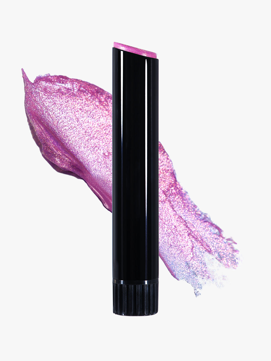 The formula is temperature-responsive and melts upon contact: it stays solid in the tube but melts instantly with body heat and light pressure, shifting from a balm to a gloss-like texture that delivers high shine and rich color payoff.