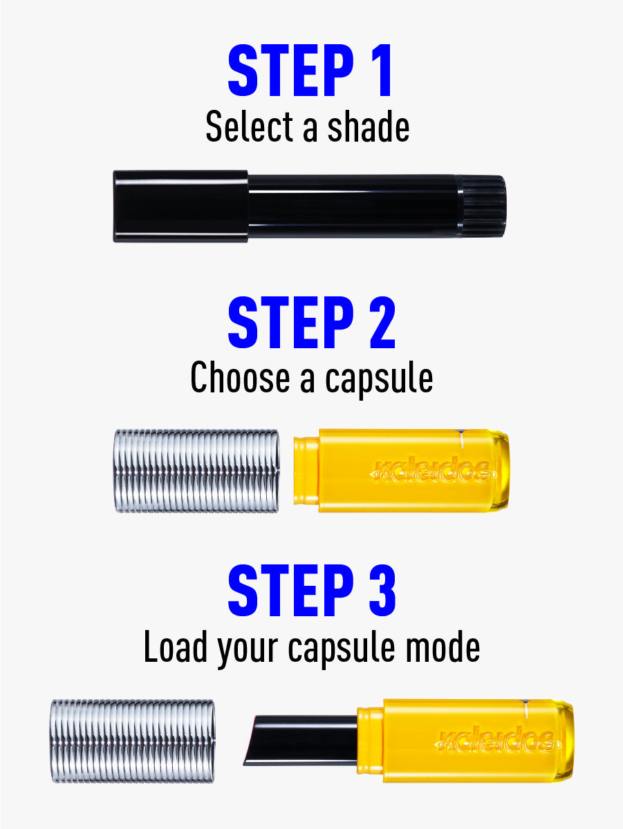 • Refillable System: Built for easy loading and swapping, so you can change shades without replacing the capsule
