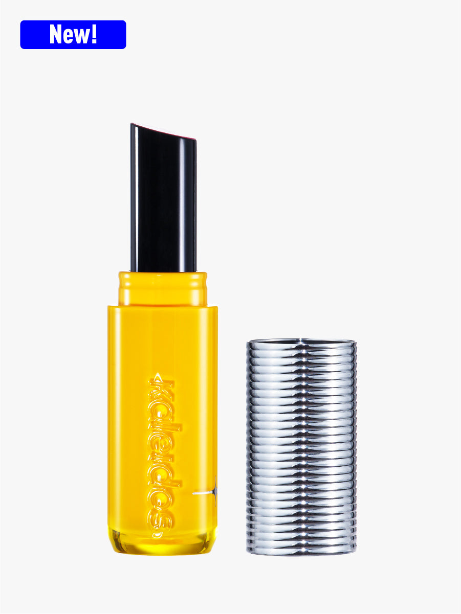 The formula is temperature-responsive and melts upon contact: it stays solid in the tube but melts instantly with body heat and light pressure, shifting from a balm to a gloss-like texture that delivers high shine and rich color payoff.