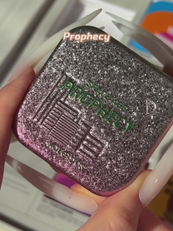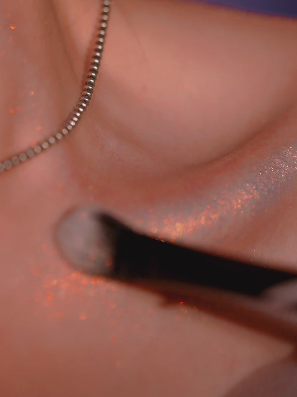A multichrome peachy highlighter with coral, gold, lime, and turquoise-green shifts. This mystical color-shifting glaze fulfills the prophecy of otherworldly radiance. Discover your destined glow with this chosen treasure.